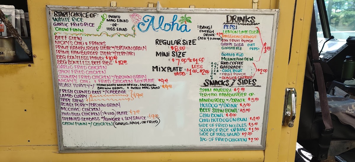 Nickys Lunch Wagon doesn’t stop there; it also features the vibrant Lamb Curry, which offers a unique and aromatic taste with the perfect balance of spices. For those who love a great side dish or snack, the menu includes Spam Musubi, a delightful combination of savory spam and rice wrapped in seaweed, offering a quick yet delicious bite. The Teriyaki Hamburger is another favorite, bringing together the sweet and savory flavors of teriyaki sauce with a juicy, grilled patty.